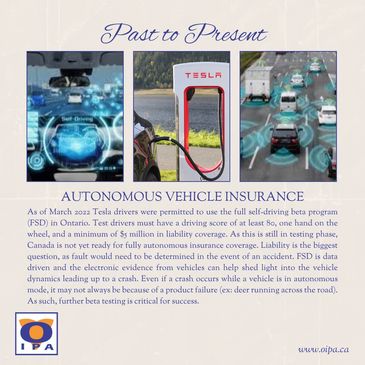 As of March 2022 Tesla drivers were permitted to use the full self-driving beta program (FSD) in Ontario. Test drivers must have a driving score of at least 80, one hand on the wheel, and a minimum of $5 million in liability coverage. As this is still in testing phase, Canada is not yet ready for fully autonomous insurance coverage. Liability is the biggest question, as fault would need to be determined in the event of an accident. FSD is data driven and the electronic evidence from vehicles can help shed light into the vehicle dynamics leading up to a crash. Even if a crash occurs while a vehicle is in autonomous mode, it may not always be because of a product failure (ex: deer running across the road). As such, further beta testing is critical for success.