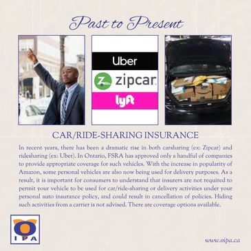 In recent years, there has been a dramatic rise in both carsharing (ex: Zipcar) and ridesharing (ex: Uber). In Ontario, FSRA has approved only a handful of companies to provide appropriate coverage for such vehicles. With the increase in popularity of Amazon, some personal ve