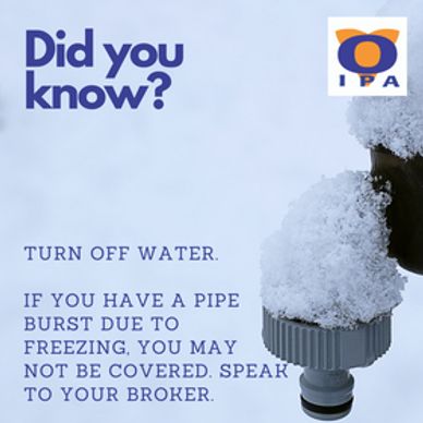 Did you know that homeowner insurance policies may have limitations, as well as conditions that must be met to provide coverage should a pipe burst in the home. A burst pipe can cause extensive damage to many parts of a home, and that can be quite costly to repair. Sometimes homeowners don’t have the right kind of additional home insurance to financially insulate them from the fallout, and that can leave many homeowners in the lurch. Be sure to speak with your broker to ensure you have the right coverage and you follow the conditions of your policy.